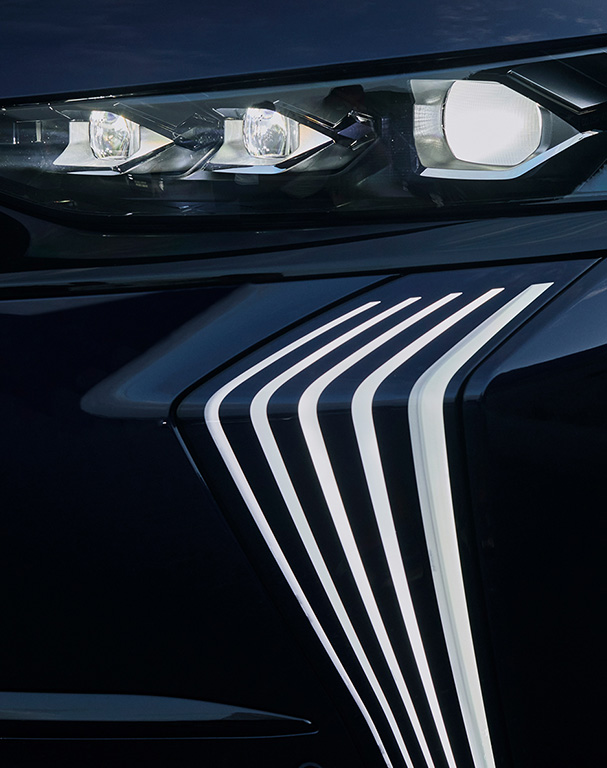 - Proiettori anteriori DS PIXEL LED VISION 3.0(i) Proeittori che si adattano all'ambiente circostante, regolando l'illuminazione automaticamente in base alle condizioni esterne e orientando la luce per migliorare la visibilità in curva. e proiettorii posteriori a LED 3D con effetto scala