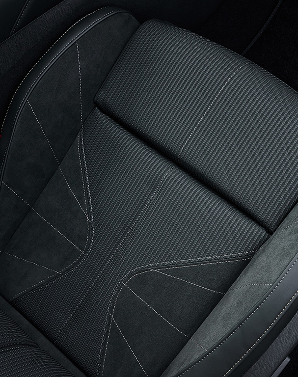 - Interni e sedili ad alta densità che combinano gli inserti in Tungsteno con il tessuto Nero DS