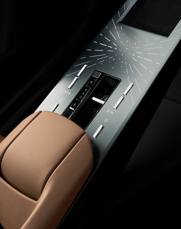 È impreziosita da 8 LED a forma di diamante allineati orizzontalmente, che richiamano gli inserti incisi 'Clous de Paris', in armonia con le finiture interne. Il frontale è esaltato dalla griglia Luminascreen, che si illumina e prende vita con fasci di luce, simili a incantevoli stelle cadenti.